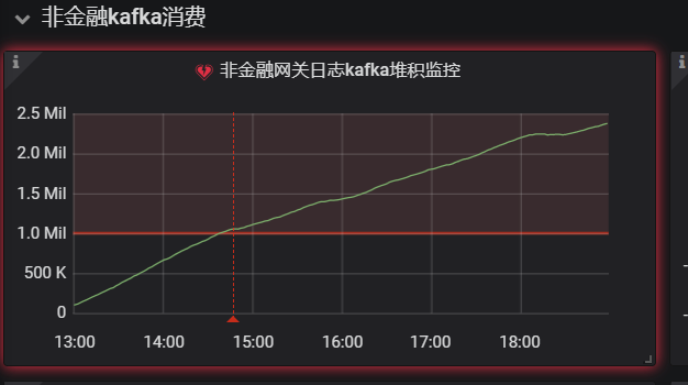 查看对应的消费组消费堆积延迟的监控,可以看到某几个Partition消费是延迟的。