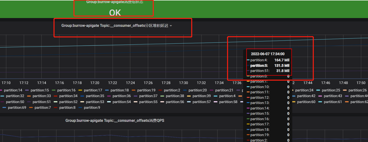 从监控中可知,该 __consumer_offsets topic对应的某几个Partition生产消息的QPS较高。