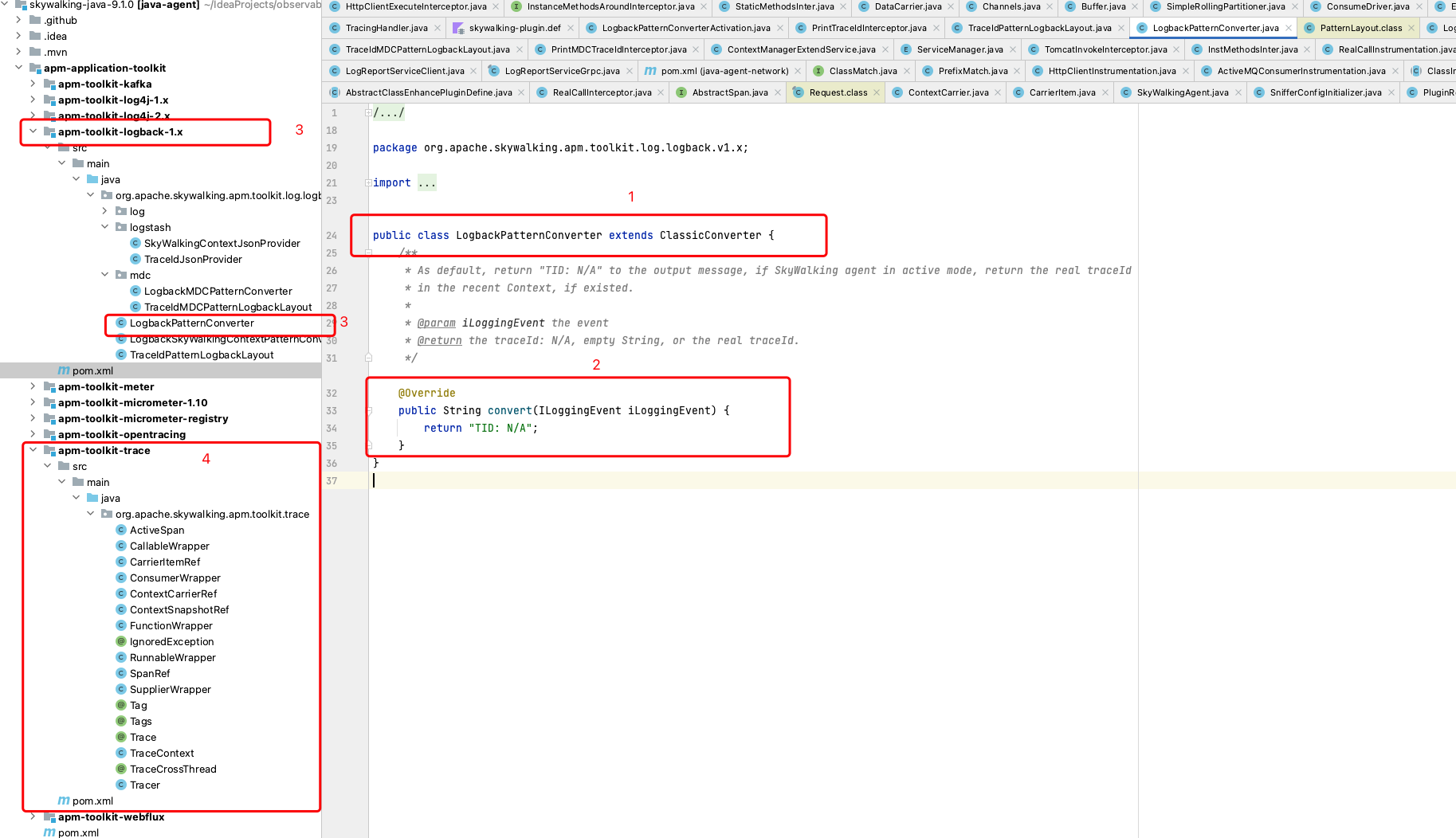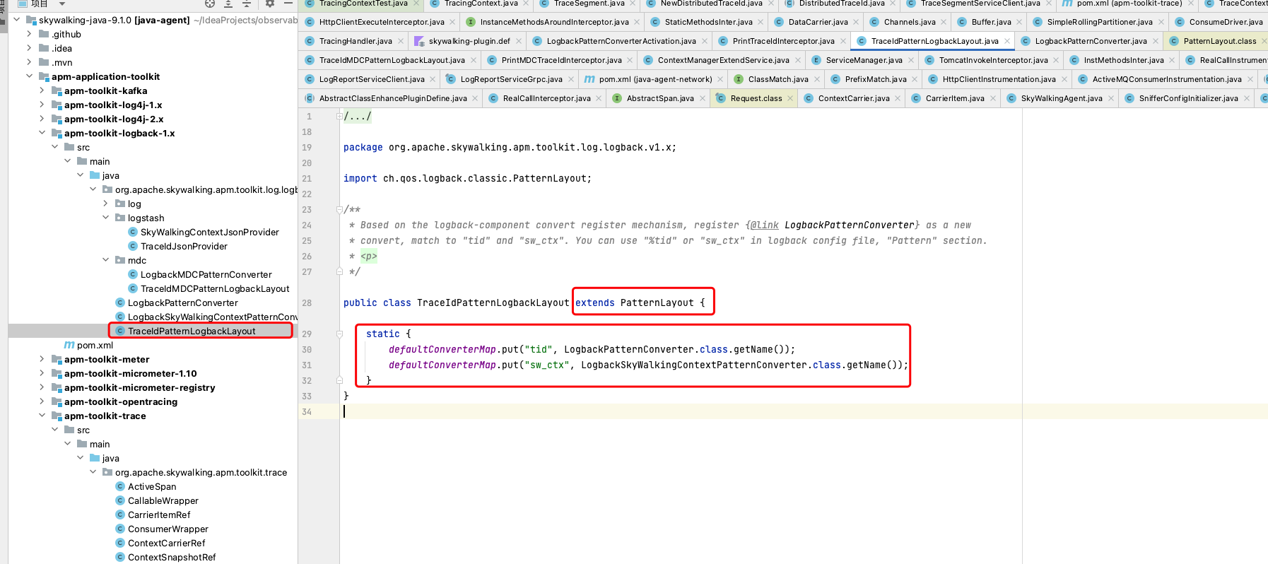 我们在对应的 apm-toolkit-logback-1.x 的项目中,除了定义了tid 的 convert 转换外,还有对应的 sw_ctx 这个字段。所以如果需要获取对应的 sw 上下文(spanid,serviceName,instanceName)等信息。