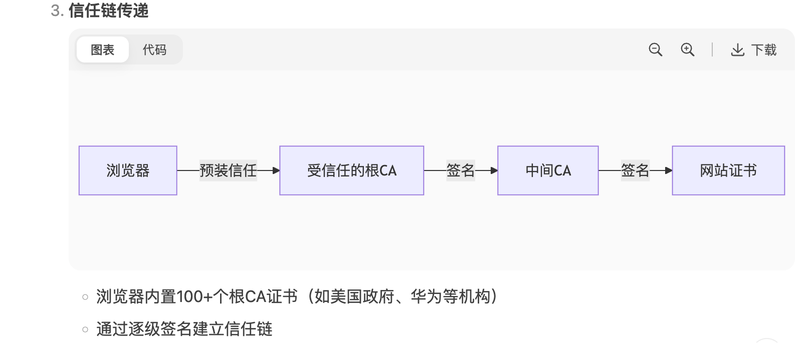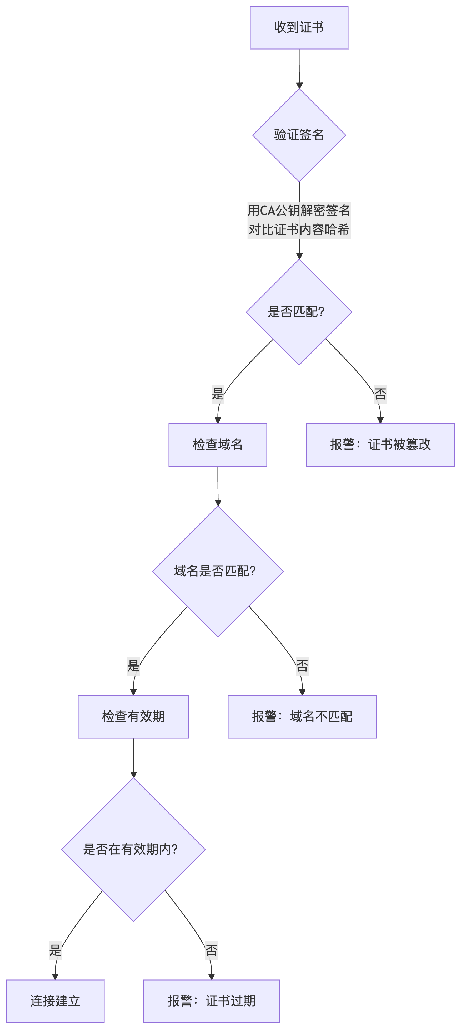 3. 匹配 → 证明证书未被篡改且由CA签发