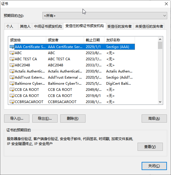 上图是 Windows 系统预制的CA 证书。