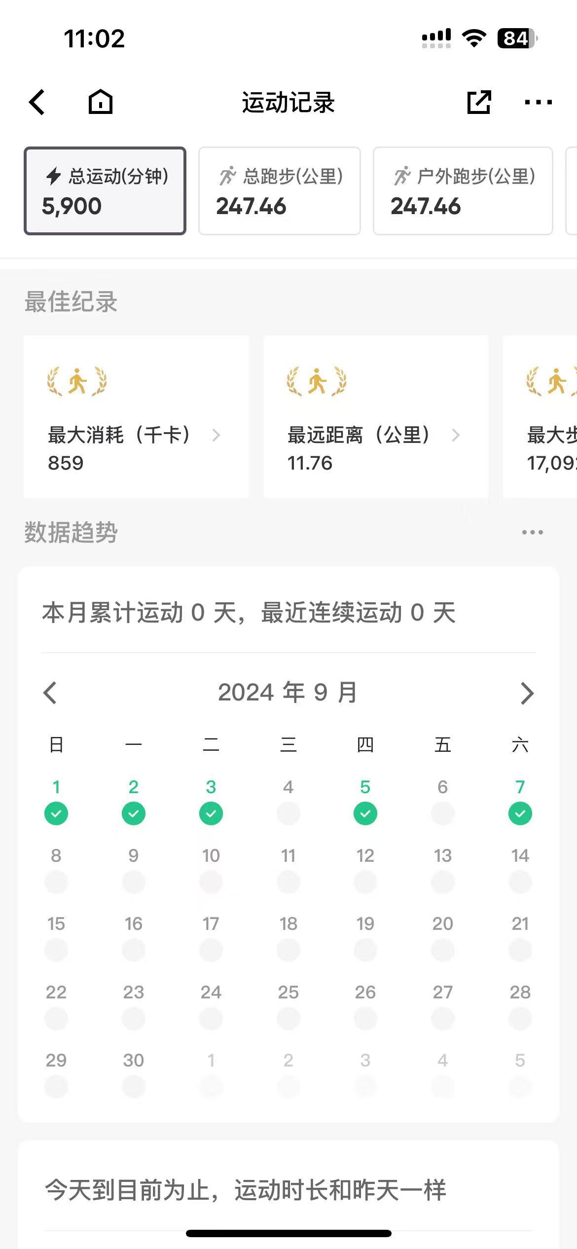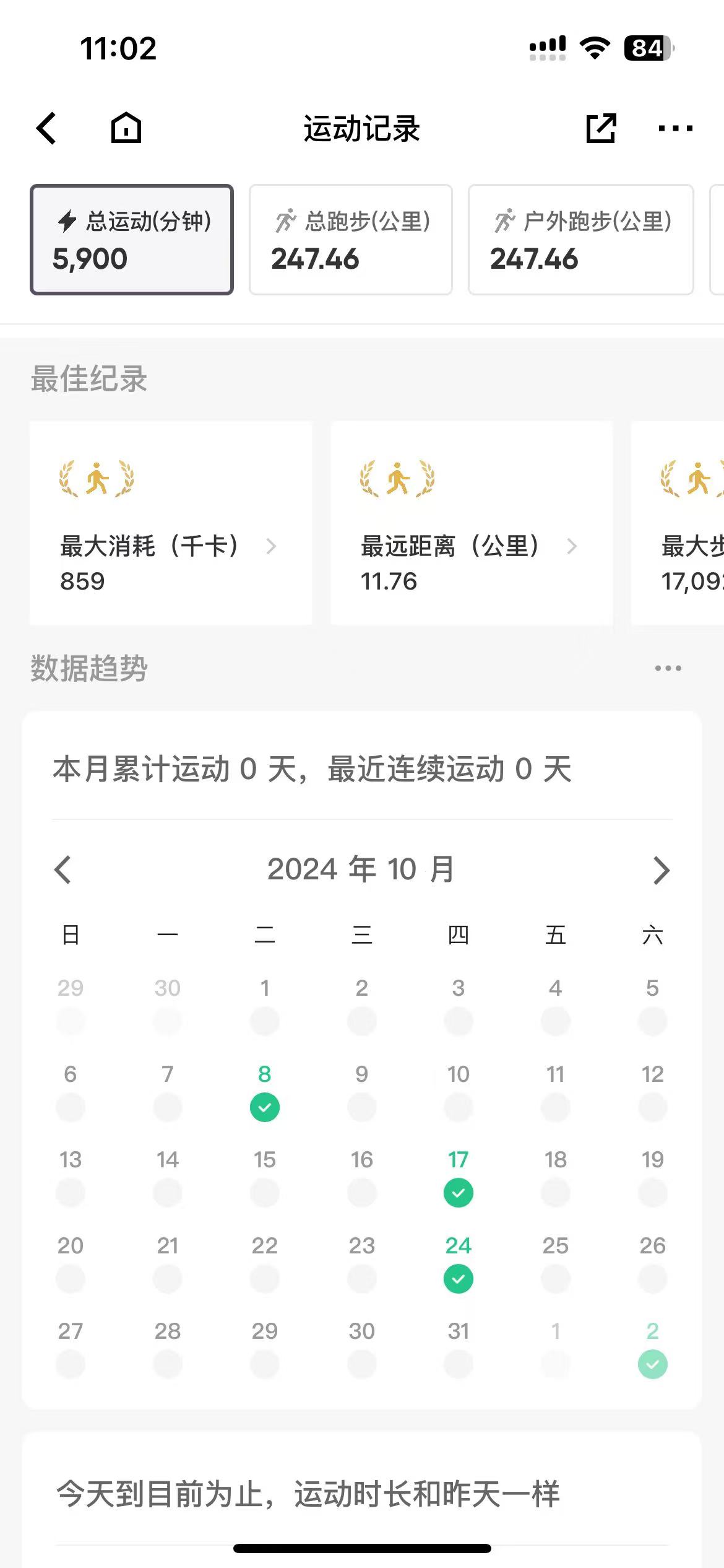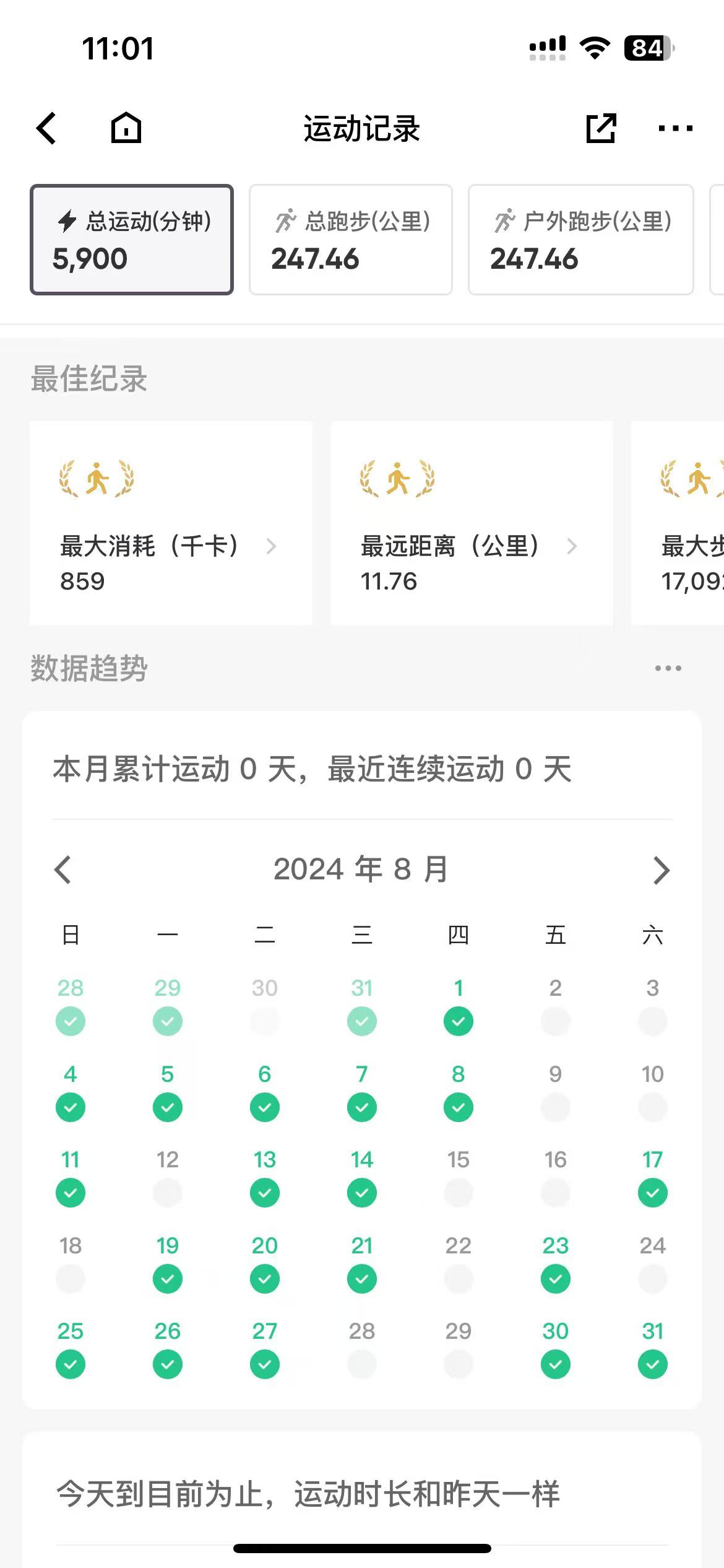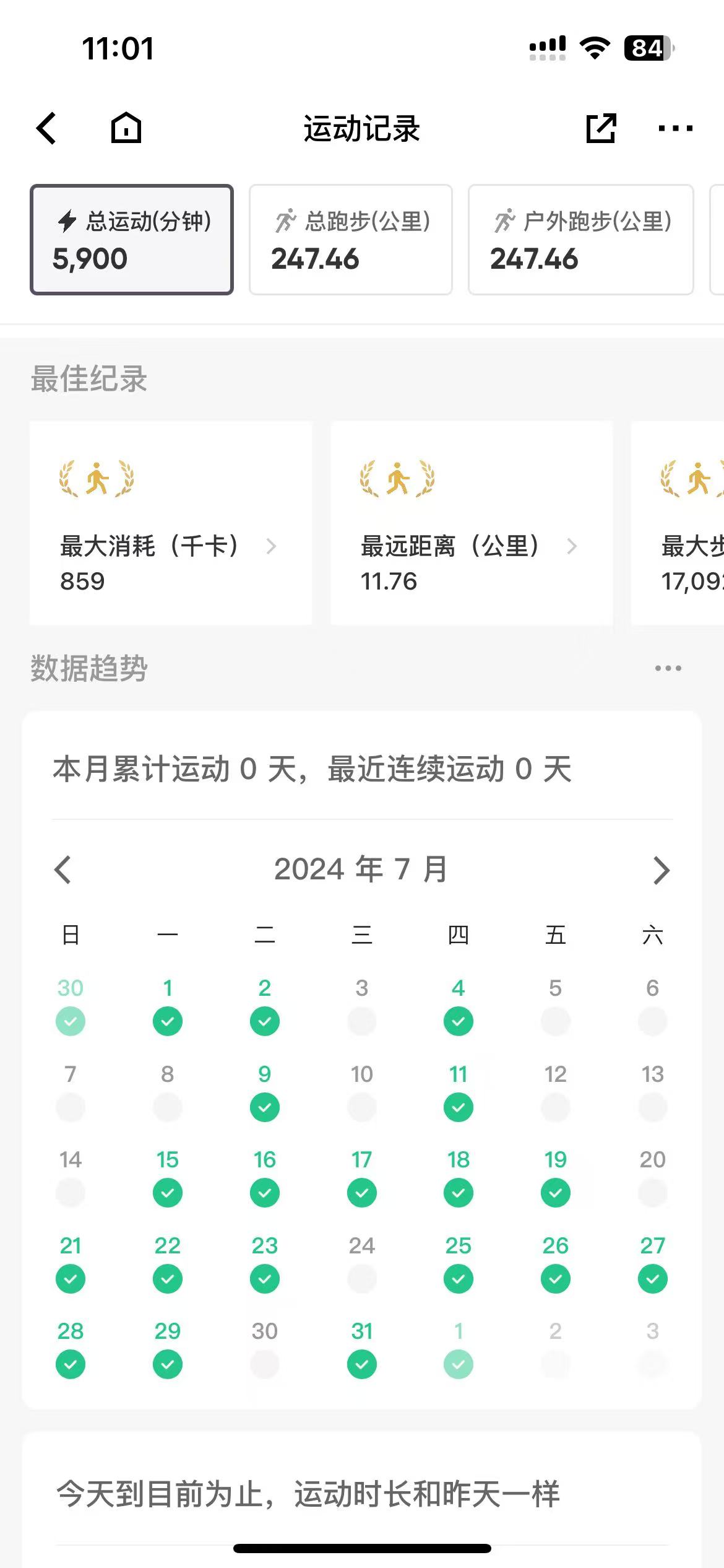 明年我会继续坚持,还是至少坚持 4 个月,因为我感觉三伏天那段时间跑步是最好的,掉秤是真快啊。所以至少坚持四个月,希望这个目标可以适当超标,嘿嘿。